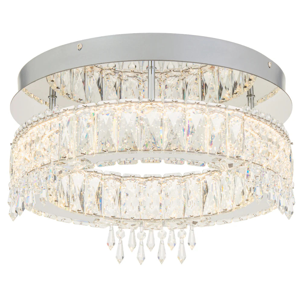 The Erika range offers a luxurious selection of modern pendant lights crafted from stainless steel and adorned with precision‑cut crystals for a glamorous finish. Available in gold or chrome, the collection spans contemporary silhouettes ranging from linear to circular and multi‑tier designs. Each fitting includes integrated LED technology with 3CCT selection, remote dimming, and is designed for indoor spaces where refined sparkle and modern elegance are desired.