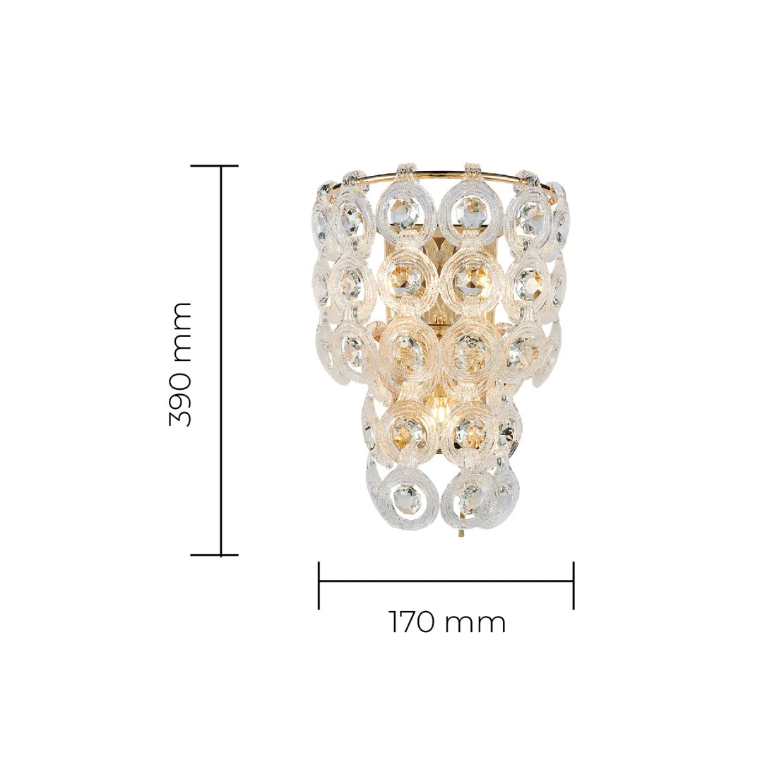 The Oro Wall Light blends timeless elegance with a bold design, creating a luxurious wall feature that enhances any space. Crafted from iron and adorned with K9 crystal and acrylic detailing, its layered form captures and reflects light beautifully. Measuring 290mm in length, 170mm in width, and 390mm in height, the Oro holds 3 x E14 bulb sockets (bulbs not included), delivering ambient lighting perfect for living areas, hallways, or bedrooms. Its high-quality materials and radiant structure make it a sophisticated addition to both modern and classic interiors.