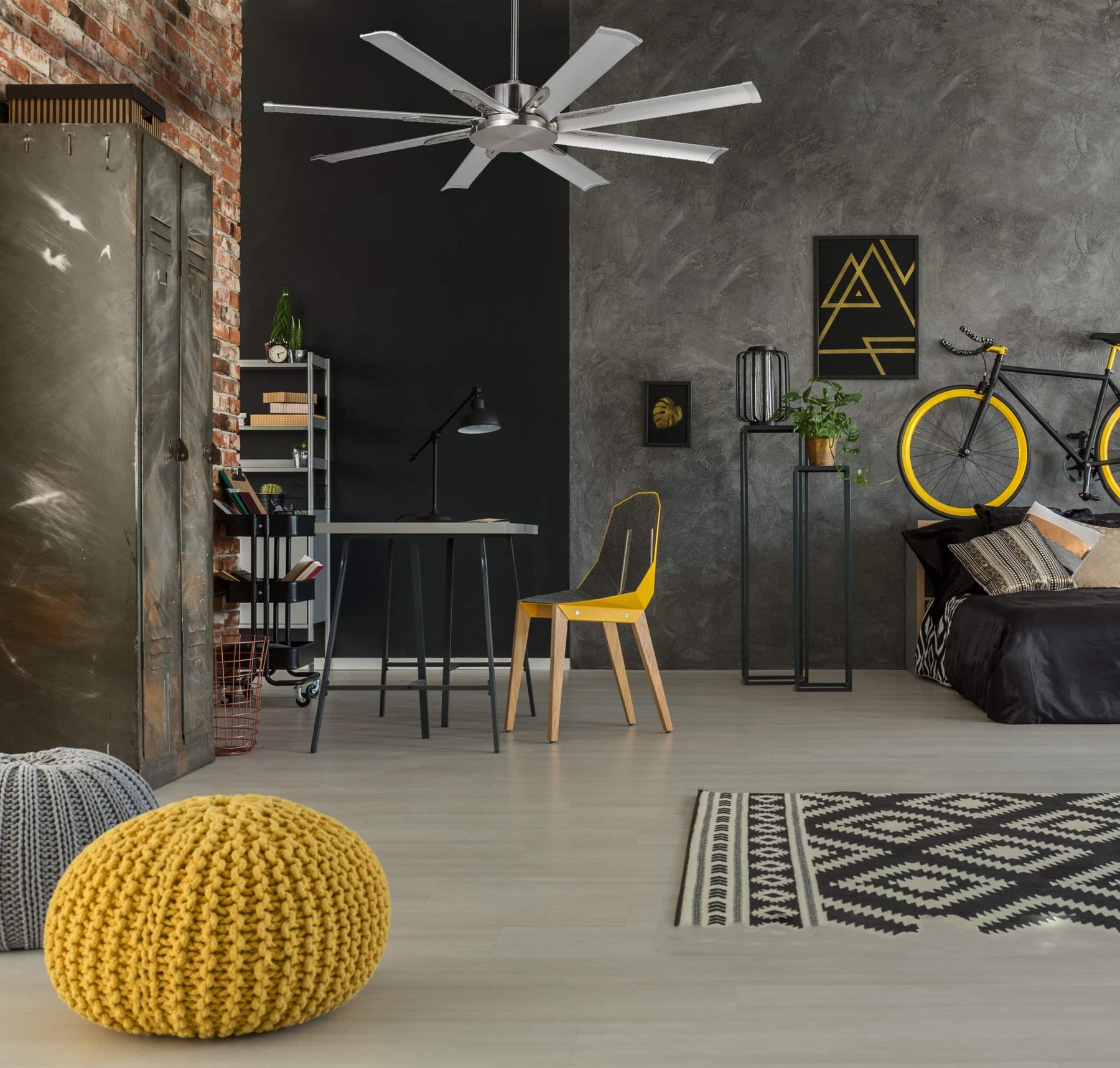 The Albatross 65" DC ceiling fan is a powerful and efficient ceiling fan thanks to its 35W brushless DC motor. The ceiling fan is also available in an 84" (2100mm) and 72" (1800mm) diameter. This ceiling fan Includes a 5 speed remote control with a timer and reverse function for added convenience.