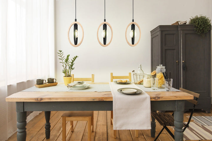 The striking mix of black metalware and timber rings on the BASILDON range is sure to give a modern edge to your living or bedroom areas.