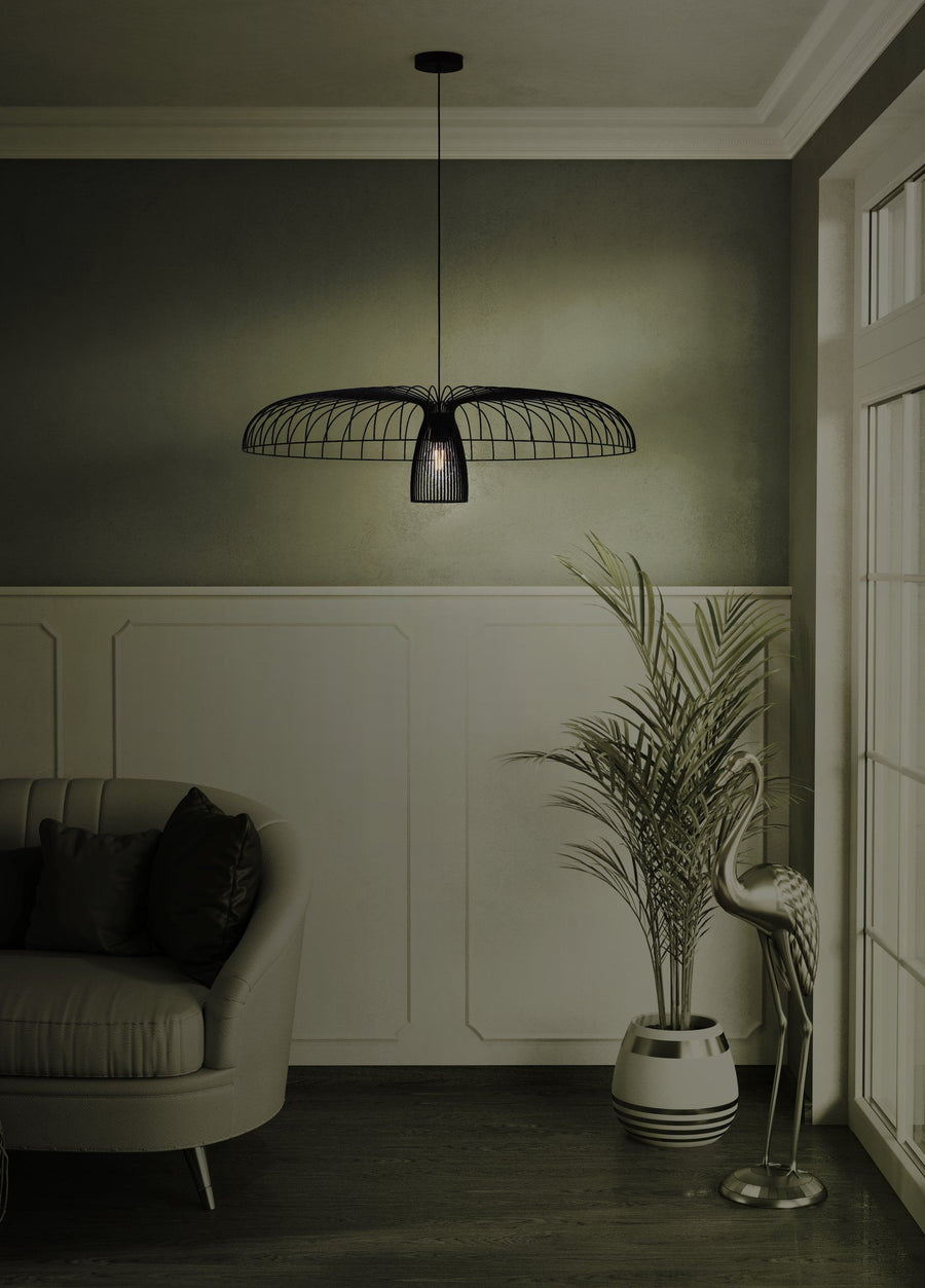 The CHAMPERICO pendant light is a grand pendant that will blend seamlessly into minimalist and modern interiors. Featuring a black wire lampshade, this eye-catching feature is a great addition to living rooms and above kitchen tables.