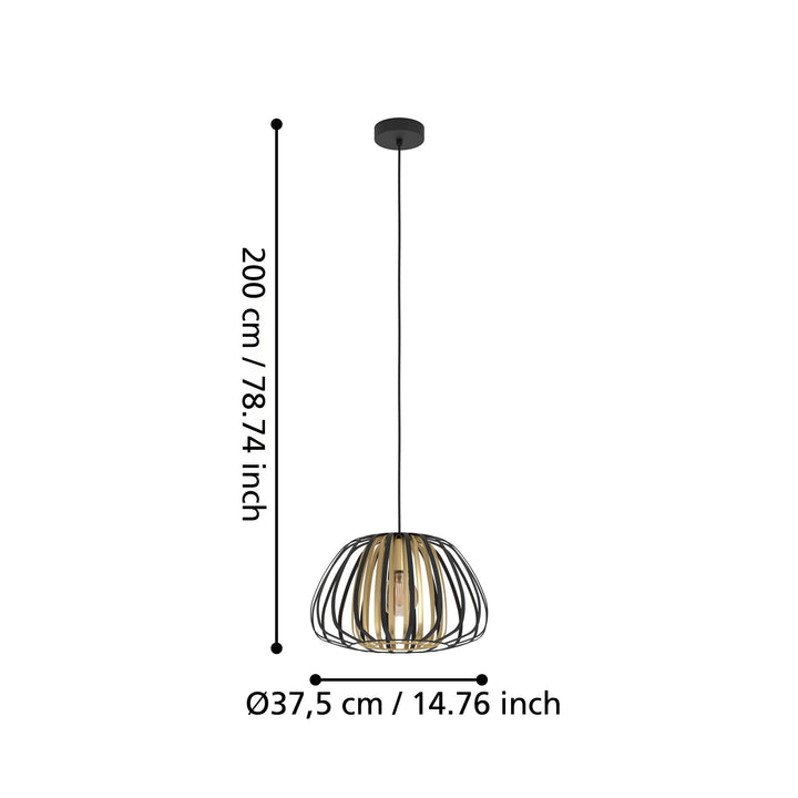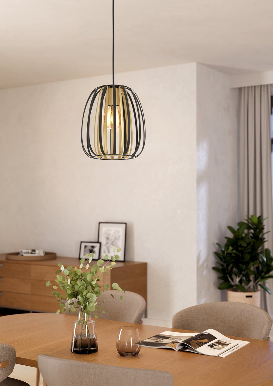The ENCINITOS pendant light features a captivating combination of black and brushed brass metal strips, and will create a statement piece in bedrooms, living rooms and hallways.