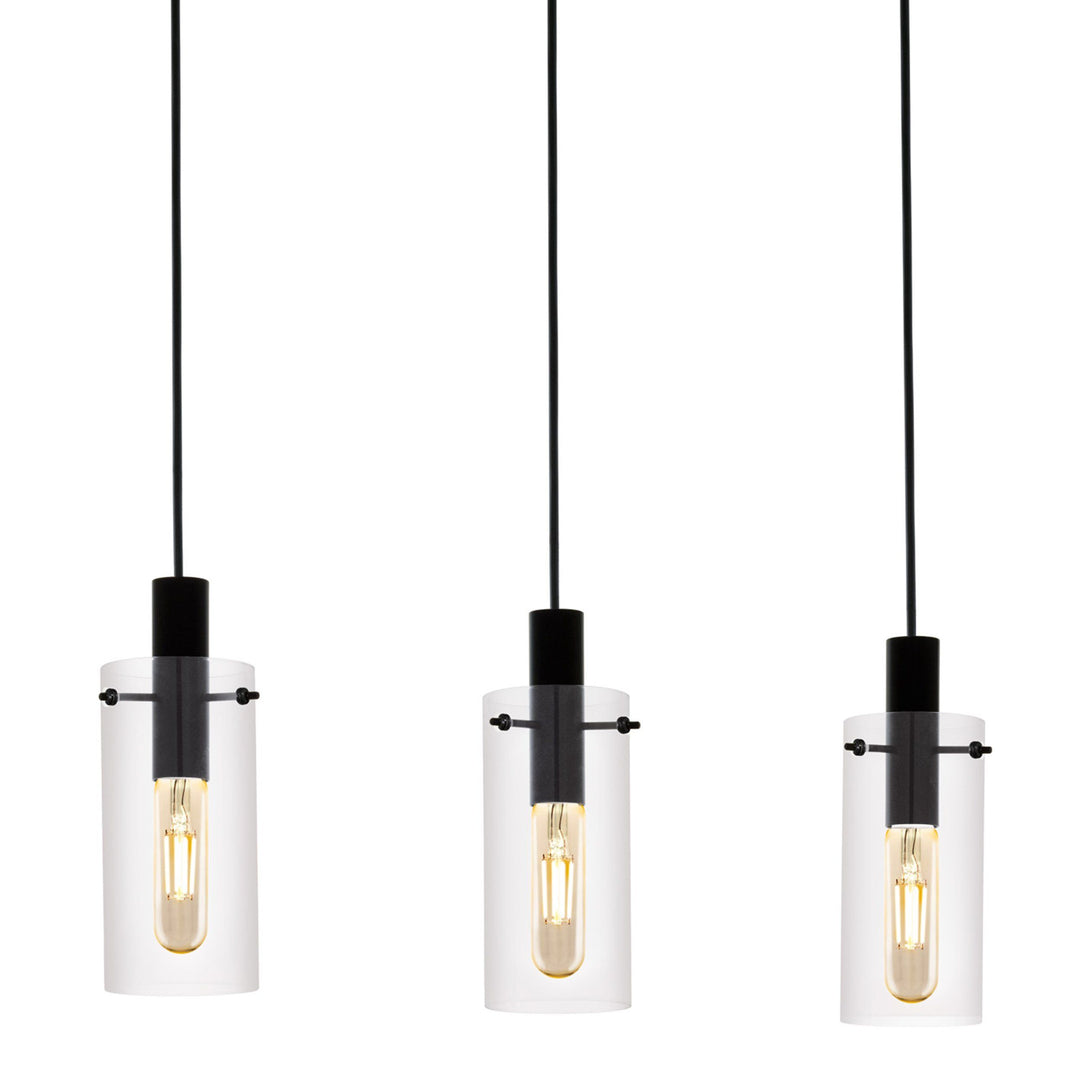 This pendant luminaire of the MONTEFINO series is made of black steel and clear glass. It pairs beautifully with an LED filament globe.