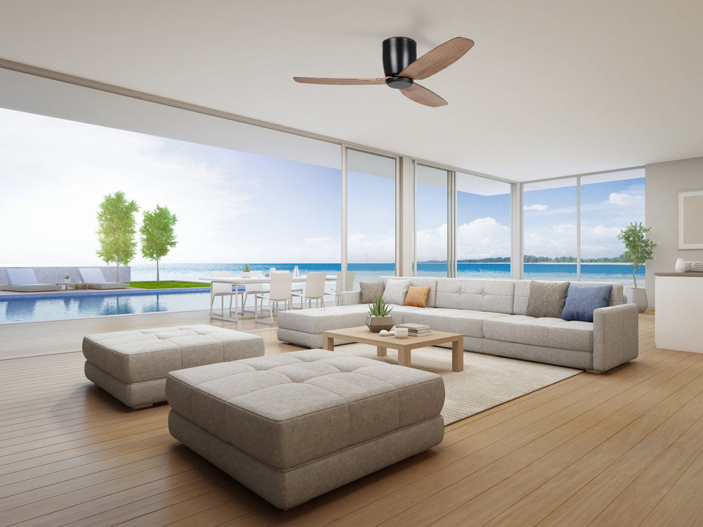 The SEACLIFF ceiling fan has a low-profile design, making it a perfect ceiling fan for homes & apartments with low ceilings. Featuring a powerful DC motor and UV resistant ABS blades, this is a modern and sleek ceiling fan that will provide comfort all year round.
