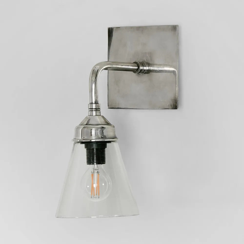 Let our Basel Wall Light be the beacon of chic illumination that transforms your space into a haven of understated luxury and style. Featuring a square backplate and a gracefully curved arm cradling a bell-shaped glass, this luminary offers both style and functionality. Whether fixed upright or downward, its versatile design lends a touch of refinement to any setting, from adorning vanity and dressing rooms to lighting up powder rooms, bedside tables, or hallway corridors.