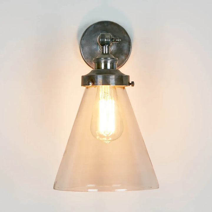 Francis is sleek wall light with adjustable arm to allow you to customize the direction of the light you wish. The cone clear glass shade is eye-catching with one interlocking feature on the arm to adjust the angle of the lamp. Francis wall lamp can also be installed on the ceiling with the light pointing up and down. We recommend Francis wall lamp to be installed with Gadsden hanging lamp as they are the same look glass shade and both fittings are made from brass.