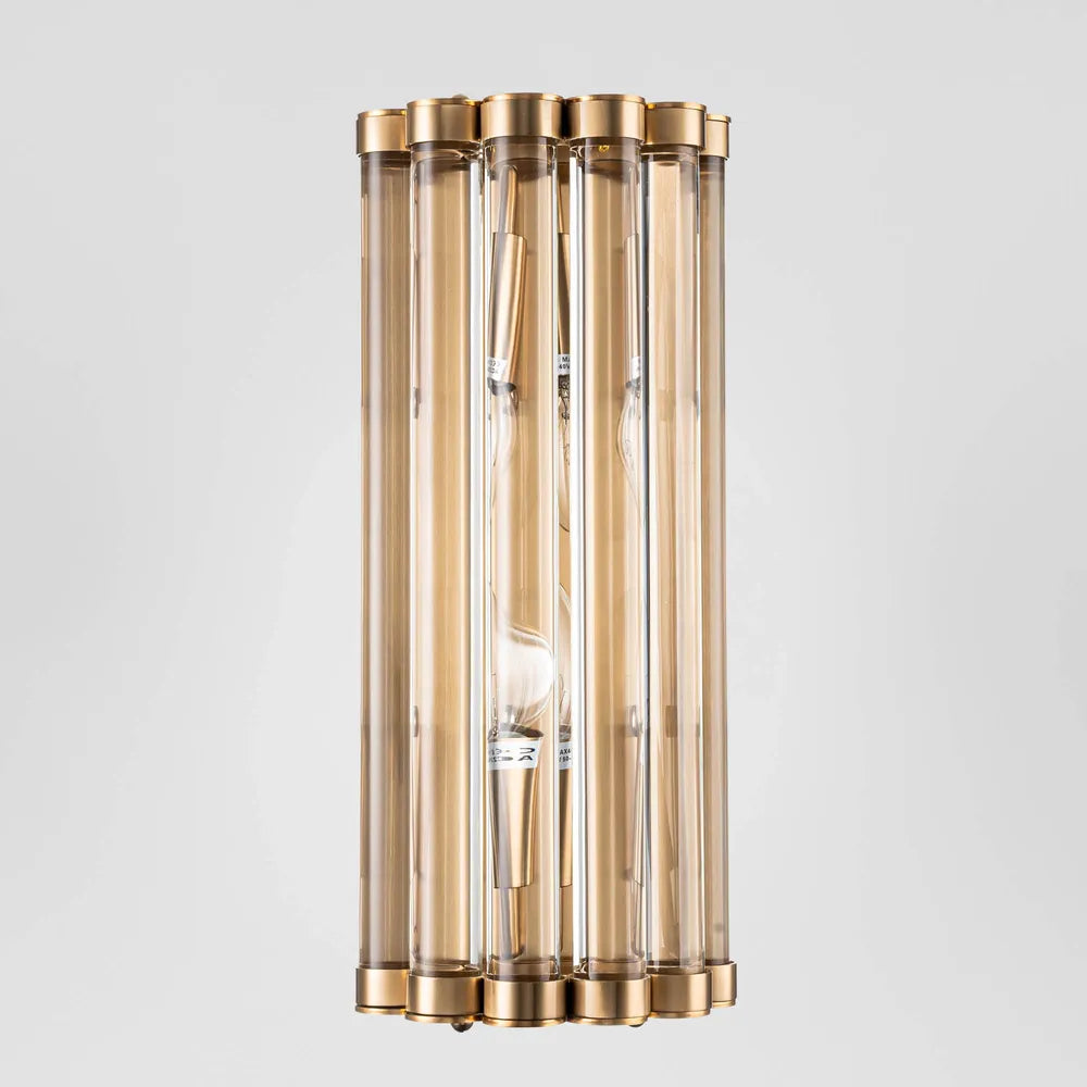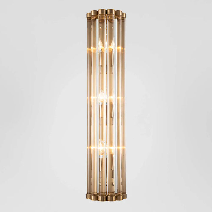 Let your walls speak volumes with our Medium Kobe Wall Light. Featuring six vertical glass rods gracefully arranged in a semicircle and supported by a brass-finished iron base, this luminary masterpiece adds a touch of sophistication to any space. Whether adorning your bathroom vanity mirror, gracing your bedside tables, or casting a warm glow in your living room, let the Kobe Wall Light illuminate your world with unparalleled charm and allure.