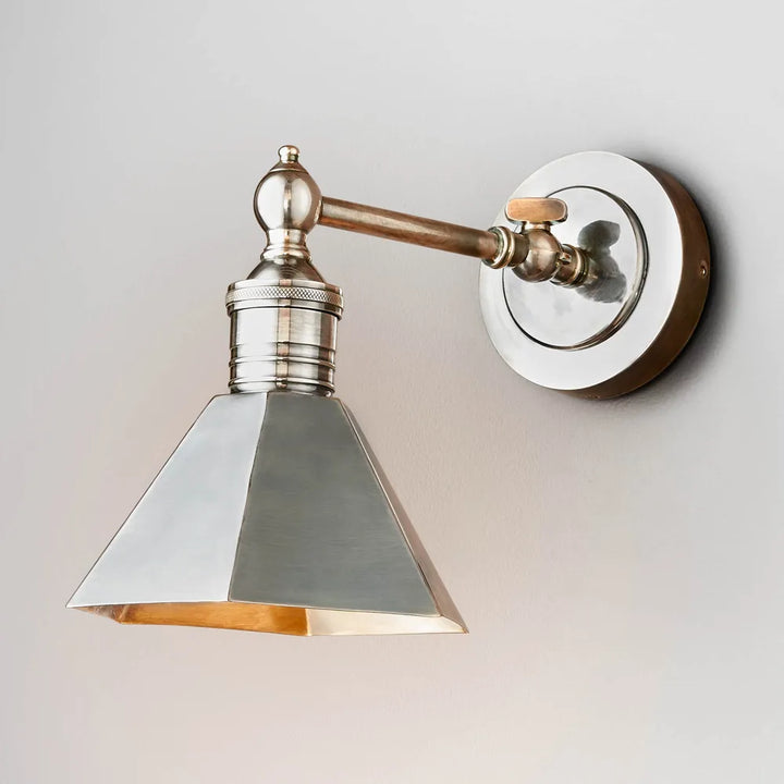 Our Mayfair is industrial hexagonal wall lamp and commonly used in café and bistro. It is versatile retro light fitting that suitable for both traditional or contemporary setting and have variety applications inside house. The lamp is super quality light as made in solid brass and finished in either antique brass, silver or shiny nickel.