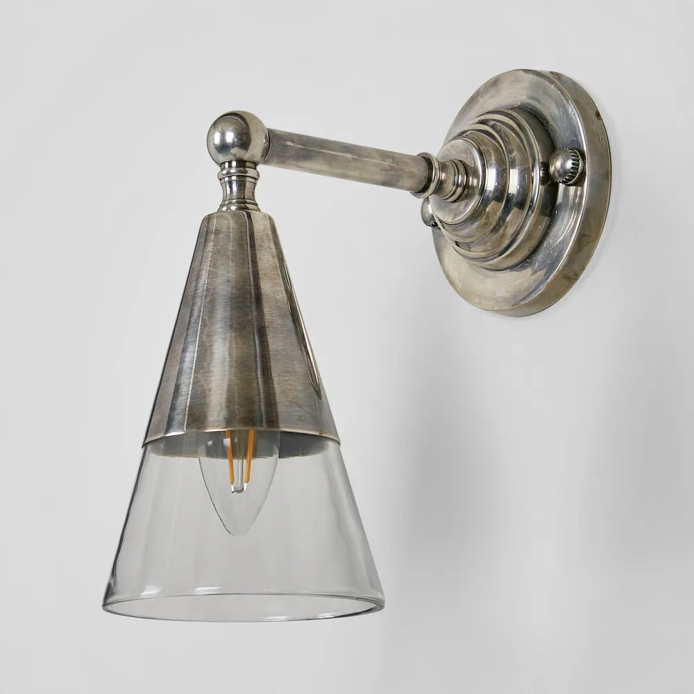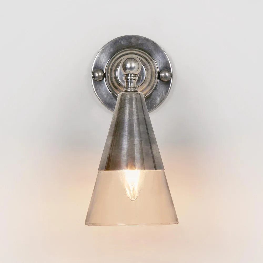 Crafted in antique silver with a delicate glass cover, our indoor Otto Wall Light exudes an air of sophistication that's sure to captivate. Whether gracing your powder room, bedside, or lining your hallway, it adds a touch of understated elegance to every space. From cozy homes to trendy cafes and bars, let the Otto Wall Light illuminate your surroundings with its unique blend of timeless charm and modern allure.