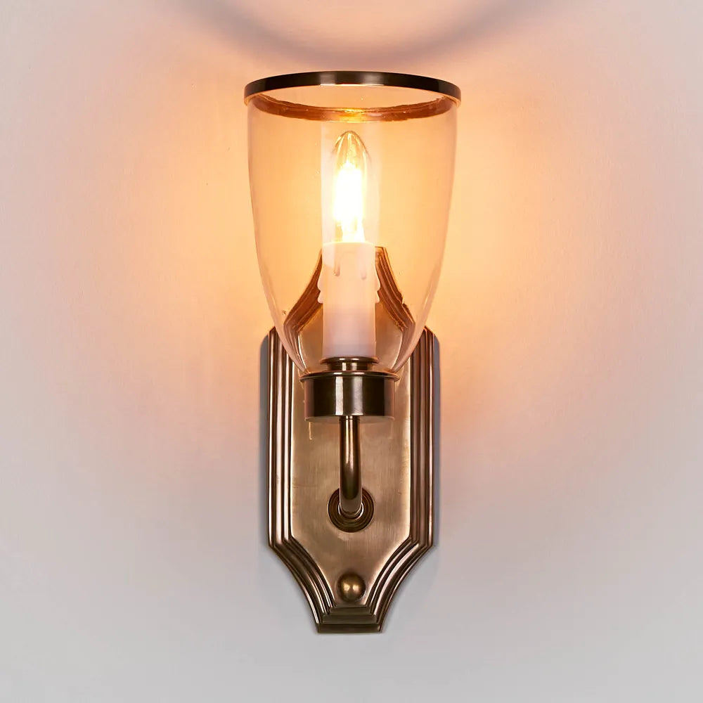 Our Westbrook is classic and beautiful wall sconce with clear glass and metal rim on top. Inside the glass, it has candle drip plastic where the bulb is sitting on, for decoration and to support the bulb creating perfect ambient lighting. This light fixture can be installed up and down position and perfect for indoor area.