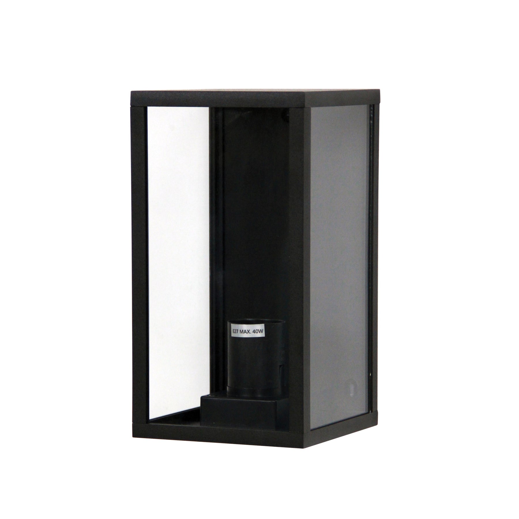PANDORA outdoor wall light in matt black finish, with a clear glass. Available flush to the wall, or extended on a bracket. Stylish, clean lines, geometric appeal, which is suitable for a modern or Hamptons style home. Clear LED globe is the ideal choice. Solid panel at top, back and base of prism.
