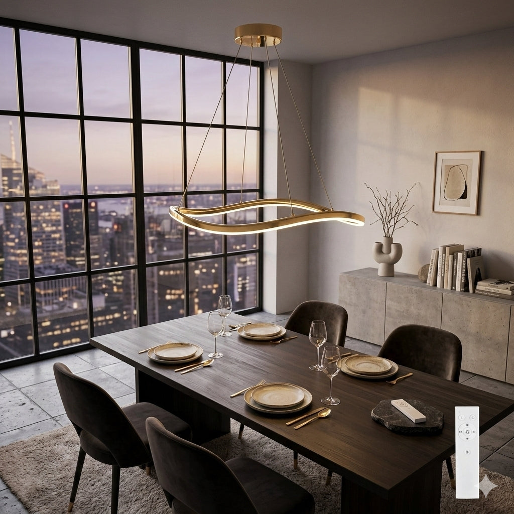 The Solara Pendant lights mirror tidal forms in its organic shape. Made of metal with a rose gold finish, wire suspends this LED pendant in the air, creating movement and elegance in any space.
