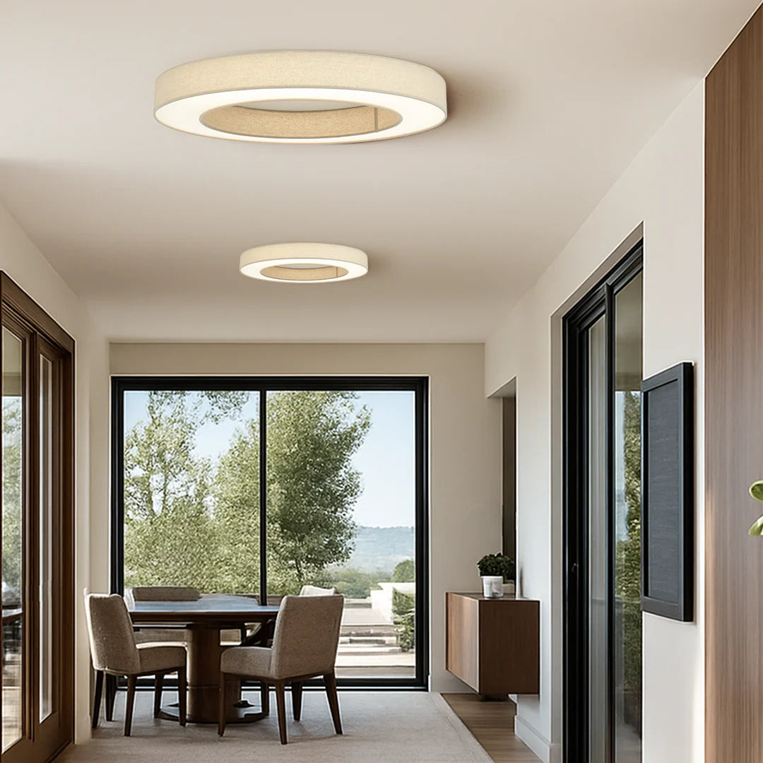 The Astana close-to-ceiling light brings a soft, contemporary feel to any interior with its sleek circular profile and refined fabric detailing. Its integrated LED panel provides efficient, even illumination with 3CCT selection from 3000K to 5000K, allowing you to tailor the ambience to your space. Finished with a gentle, diffused glow and TRIAC dimming compatibility, it’s a stylish and versatile choice for living areas, bedrooms or hallways.