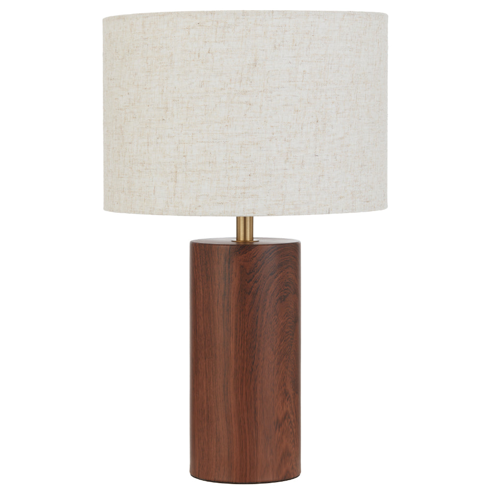 The Stylin table lamp features a sturdy iron base finished in a warm, painted wood look, offering the natural appeal of timber with lasting durability. It is paired with a textured fabric drum shade that softens the light beautifully, creating a warm and inviting ambience. Simple, modern, and versatile, Stylin is ideal for bedside tables, living areas, or any space needing a clean, contemporary accent.