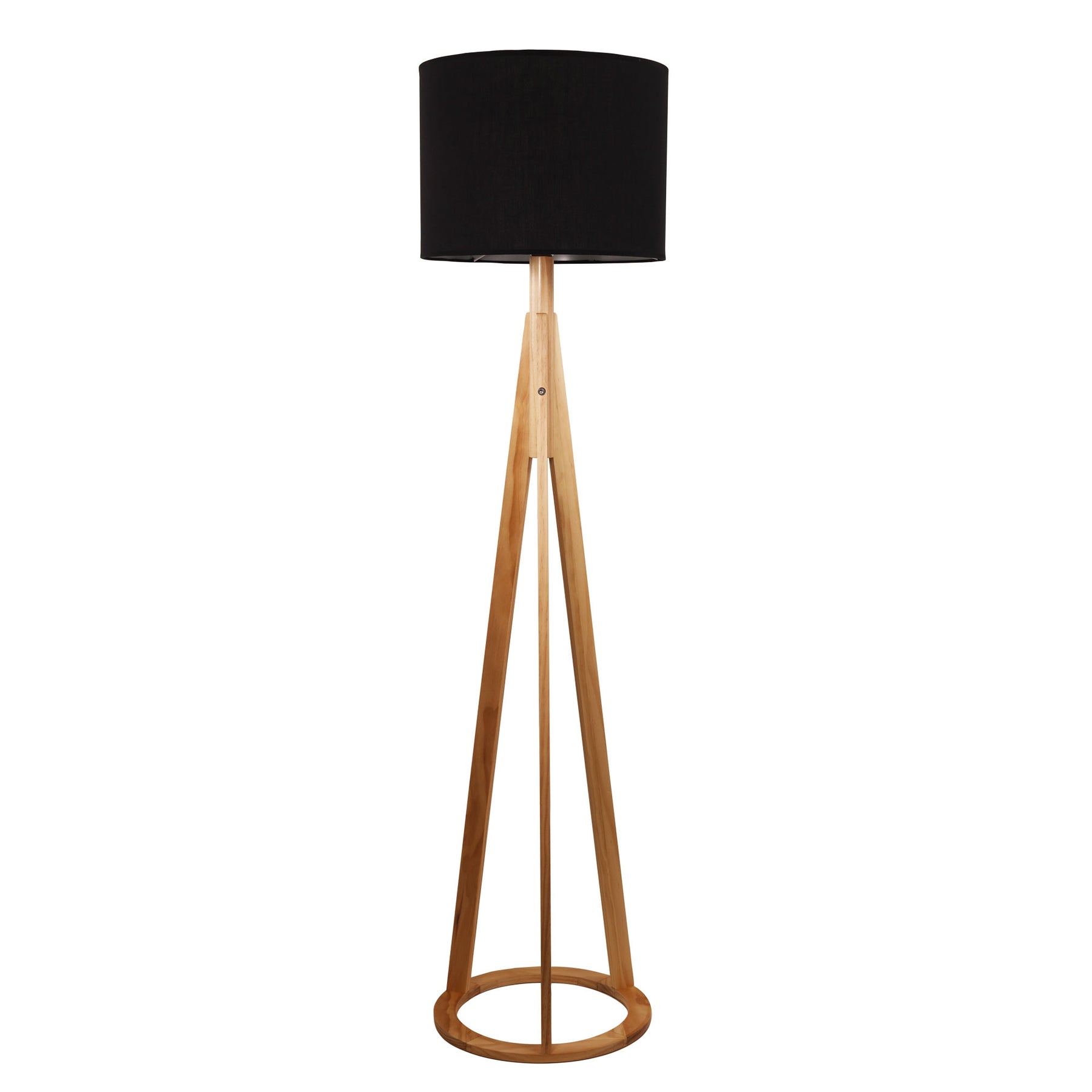 This Scandi STABB tripod lamp is crafted from finger jointed pine timber and supplied with a drum shade. The timber ring around the base is designed to make the STABB stable and stylish. The base is supplied unassembled (allen key provided), it is very easy to put together. Supplied complete with a drum shade as shown and a free light bulb.