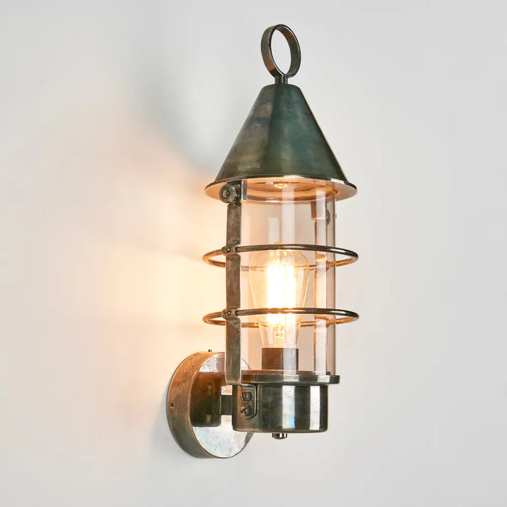 Our Eastwood wall light is IP-rated 54 outdoor wall sconce with clear glass and brass metal cage, which suitable for indoor and outdoor use. This lantern style wall lamp is used mainly for outdoor garden lamp, patios and entryways. With sleek appearance, it can also be used in bathroom as side mirror lights to match any industrial, rustic or loft-style décor. Its caged enclosure houses a standard bulb or an antique-style filament that mimics the glow of a warmly lit station.