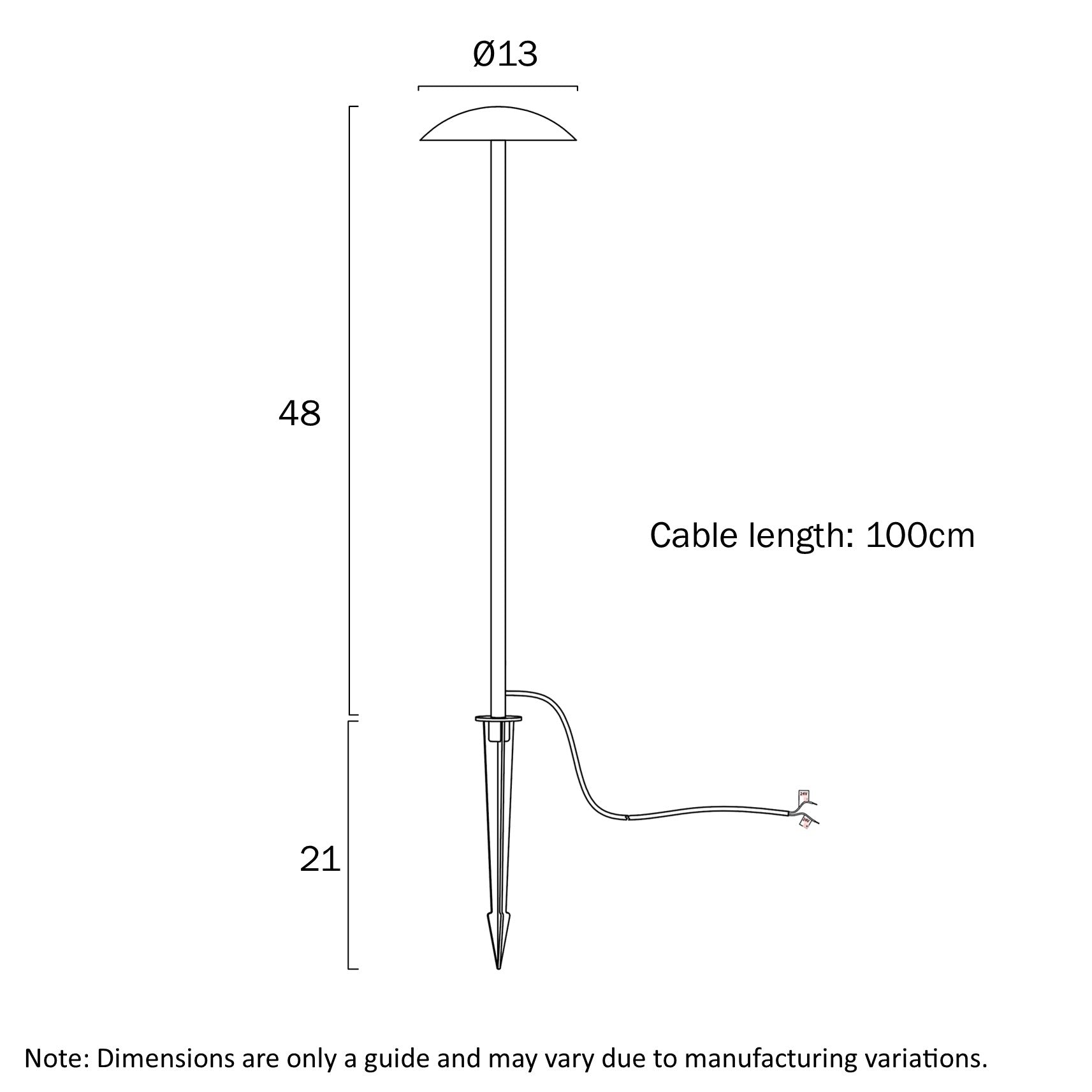 The LUC post light is a down beam LED luminaire. The mini bollard-style lamp is simple and functional. It consists dome-shaped shade, fitted with LEDs on the underside, whose light is emitted downwards. Ideal for illuminating footpaths and access ways and perfect for front gardens, green spaces and flowerbeds. With an operating voltage of 24 volt AC/DC and a water-protected rating of IP65 it is a versatile and safe lighting solution for outdoor areas. Other fixtures in the LUC series can be combined to form a complete out door space solution. A 24 volt AC transformer is recommended to power up this fixture.