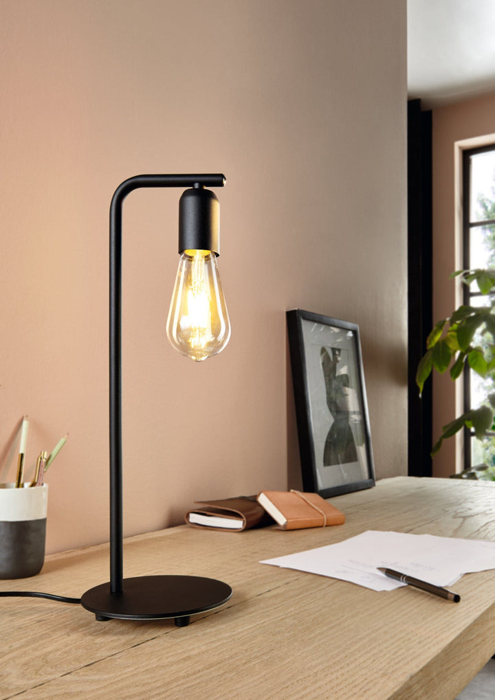 This table luminaire of the ADRI 3 series is made of black powder-coated steel, and pairs perfectly with a vintage LED globe from our accessories range.