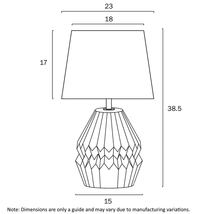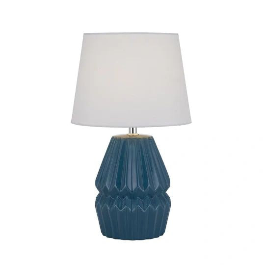 The GREET table lamp is inspired by a stacked cupcake design. Ideally suited for feature bedroom lighting this lamp is coated in a high gloss ceramic glaze. Available in 5 colours and opped in a classic, white poly-cotton tapered shade.