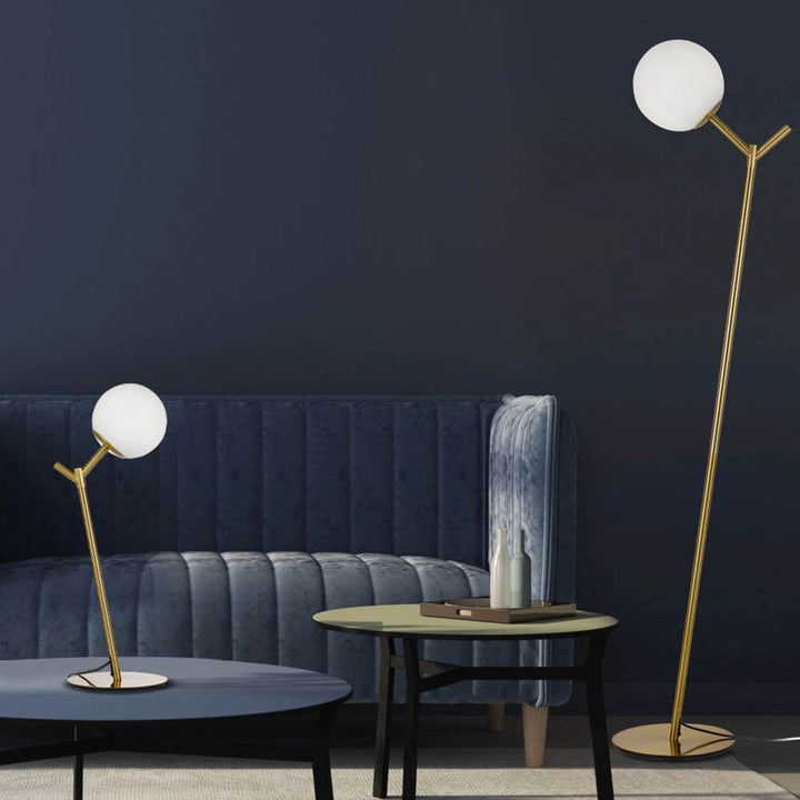 The versatile Ohh table lamp adds that Scandi design to any room of your home. The diagonal arm supports a mouth blown opal matt glass globe. Also available as floor lamp.