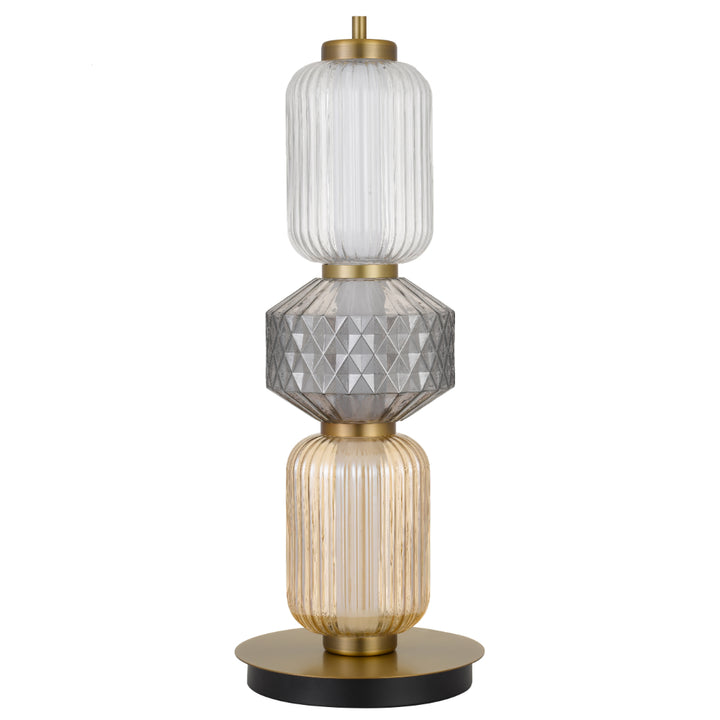 Introducing the Torso family of lighting fixtures—a distinctive collection that includes table lamps, floor lamps, wall lights, and pendants. Crafted from durable iron, each piece features a striking blend of diamond-cut and rippled glass shades. The 3-light and 5-light options offer versatile installation with two orientations to suit your space. Available in elegant black or brass finishes, these lamps are LED-integrated, providing a warm 3000K colour temperature for a cosy ambiance. Perfect for adding a touch of sophistication to any room.