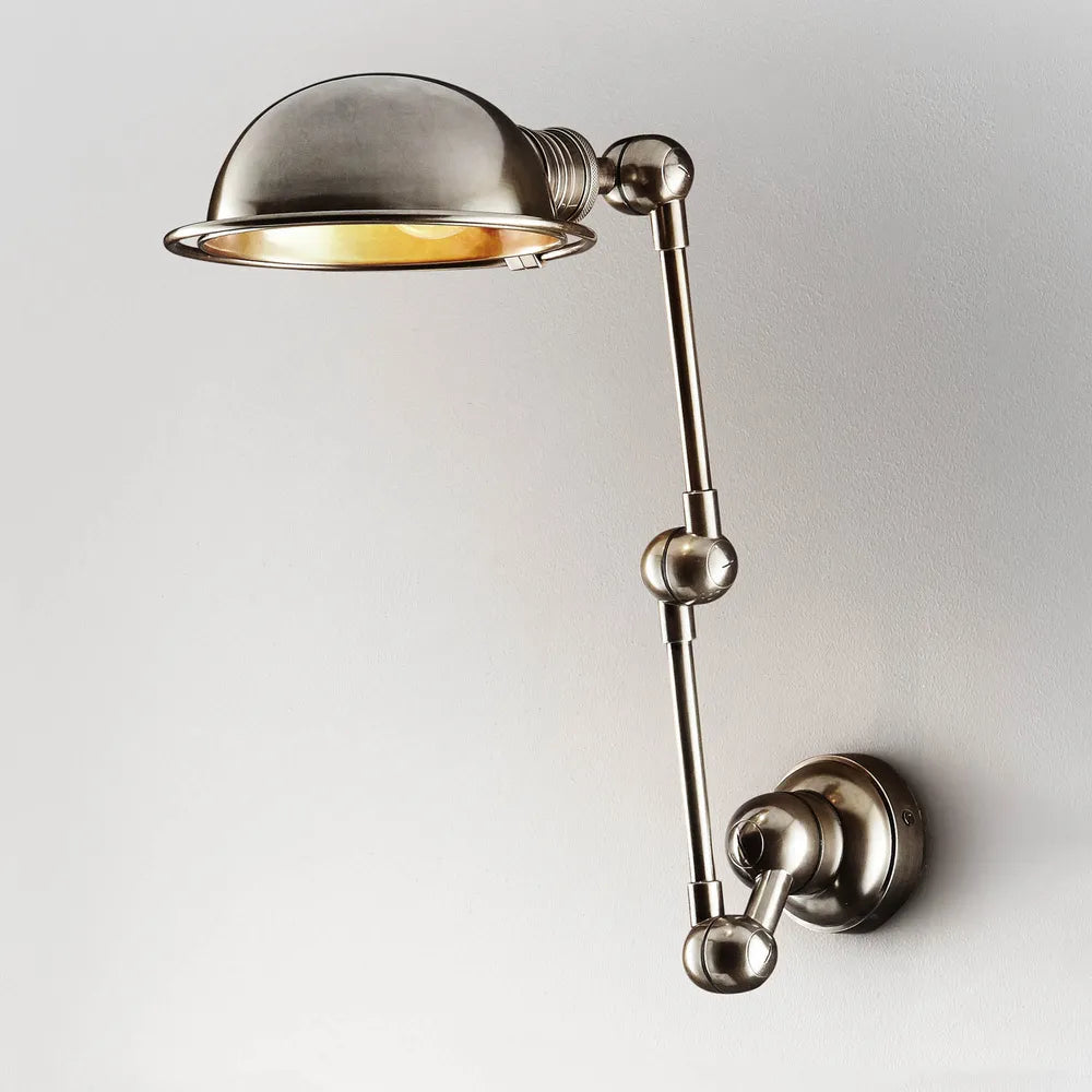Refine lighting in your home or office space with this polished antique silver/brass finish joint arm solid brass wall lamp. Lincoln is classic adjustable swing arm wall sconce, merge style and functionality for the perfect task lighting solution. With a dome-shaped shade and jointed adjustable arm with three position interlocking feature. Lincoln will add subtle retro touch to your home or business.