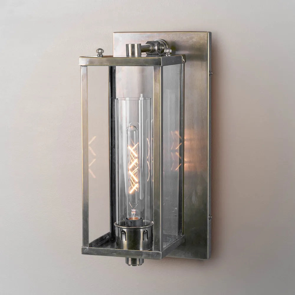 Update the look of your home exterior with this classic and Hampton style outdoor wall light. Pavillion outdoor wall lamp features an outer frame of silver/brass finish metal and clear glass. Its simplicity design suit to modern interior styles and to brighten up an entrance, walkway or even for bedside light.