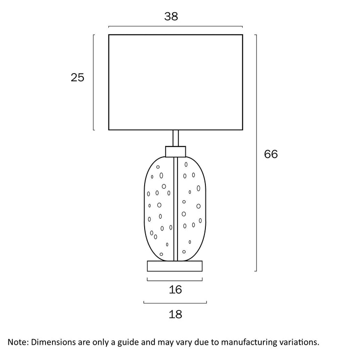 Displaying a timeless elegance, this table lamp is handcrafted from glass is finished in bubbled aqua turquoise with metal accents in antique gold. The lamp is complemented by a hardback tapered shade in bronze fabric.