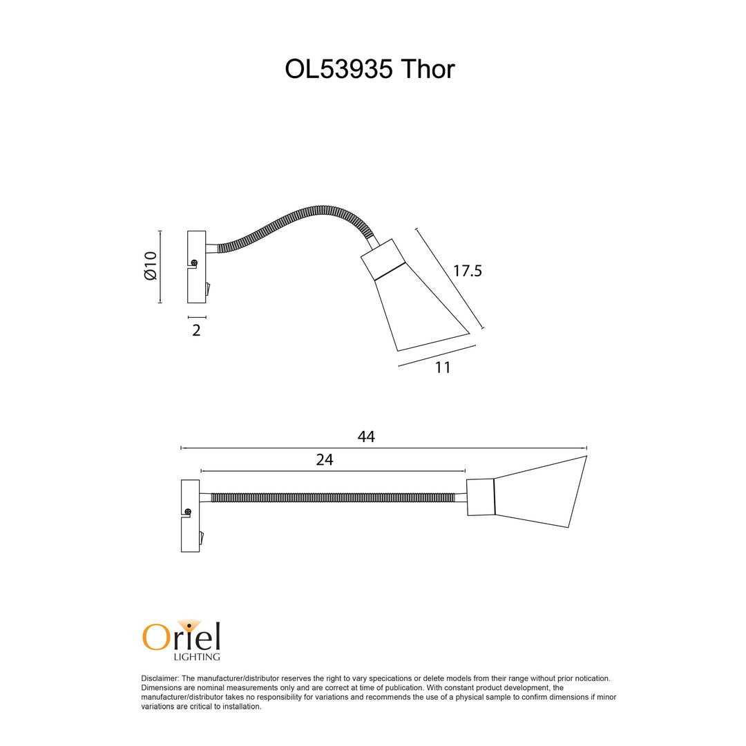 The THOR WALL LIGHT has a fully adjustable ‘goose-neck’ and switch on the wall plate, making it an ideal light for bedside use. The matt black finish with brushed chrome features makes the THOR suitable for a variety styles, the white paint on the inside of the shade provides excellent light reflection. Supplied without a globe, allowing the end user to select the most appropriate light globe for their application.